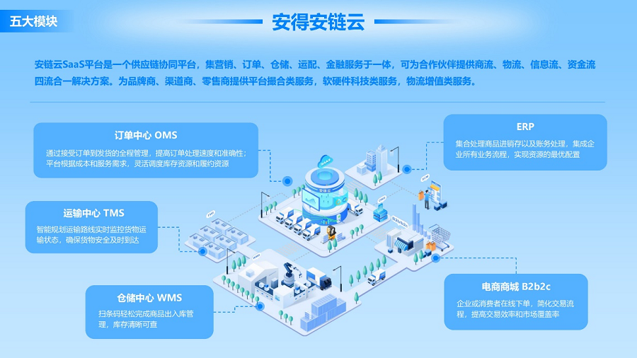 安得安链云是深层次地交融“四流”(商流、物流、信息流、资金流)的供给链协同SaaS途径,集营销、订单、仓储、运配、金融服务于一体,可为合作伙伴供给商流、物流、信息流、资金流四流合一处理计划,从途径服务、科技赋能、物流增值三大维度,精准处理企业供给链中心痛点。